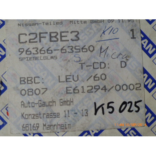 Original Nissan Micra K10 Sunny N13 Spiegelglas links 96366-63S60